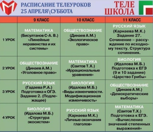 Расписание на 25 апреля