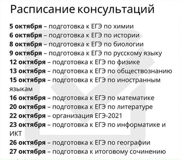 В ходе консультаций можно будет получить информацию об экзаменационных материалах ЕГЭ 2021 года — какова структура и содержание экзаменационной работы, какие изменения ждут выпускников в этом учебном году, на какие задания стоит обратить особое внимание и как правильно выстроить работу по подготовке к ЕГЭ, как избежать типичных ошибок и правильно пользоваться доступными ресурсами для подготовки.