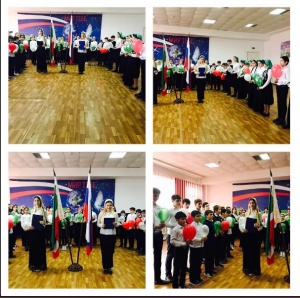 Торжественная линейка, приуроченная Дню Конституции Чеченской Республики.