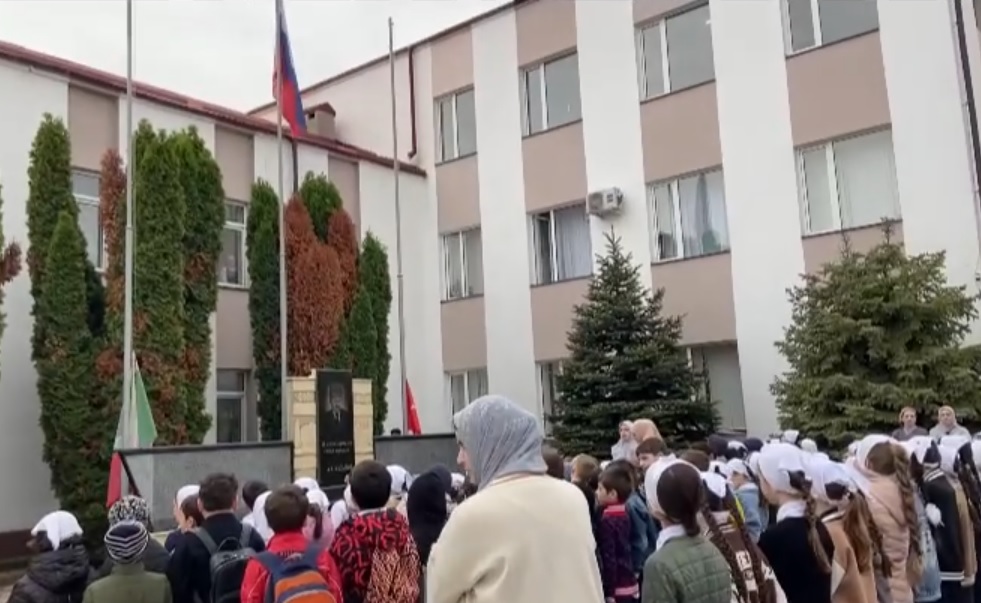В нашей школе прошла торжественная церемония поднятия флагов Российской Федерации, Чеченской Республики и флага Победы под исполнение гимнов РФ, ЧР и гимна Победы, в рамках мероприятий, посвящённых 9 Мая.