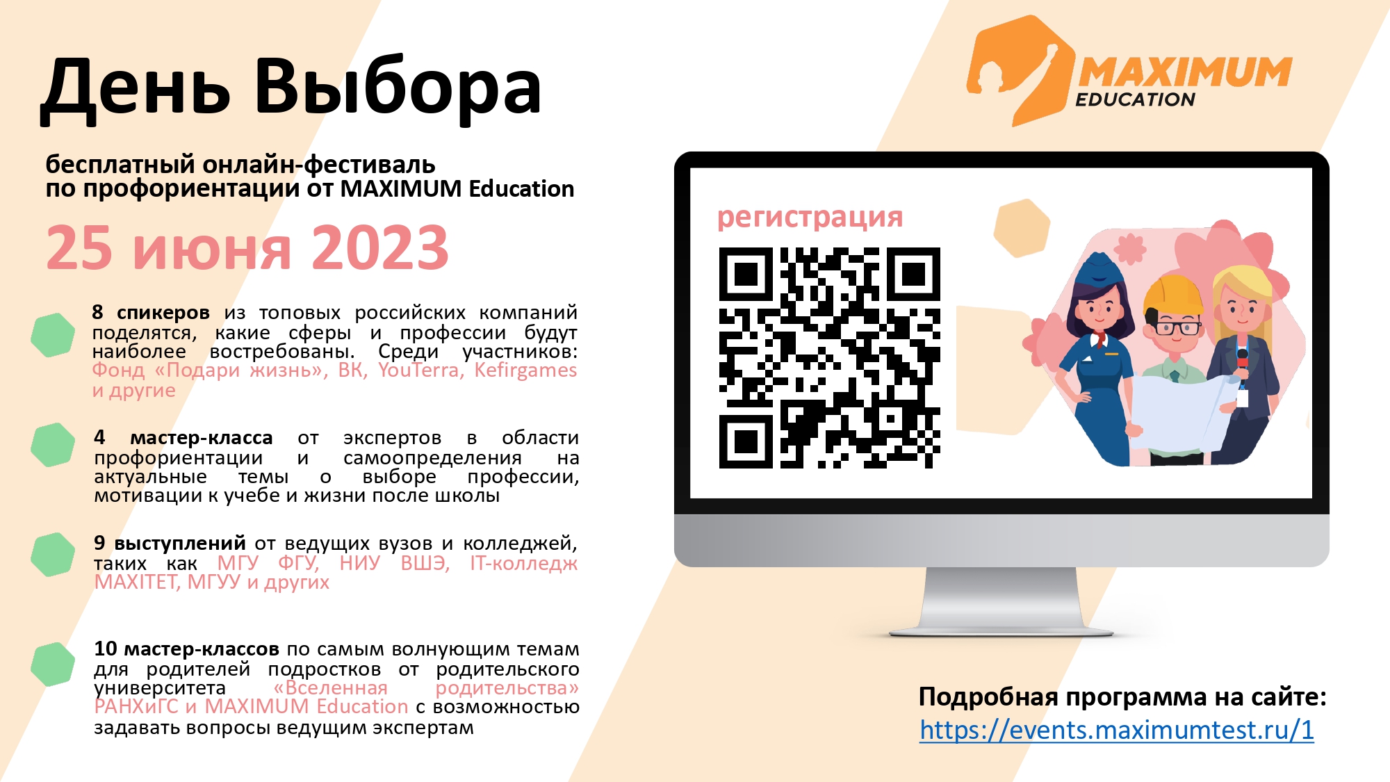 Бесплатный онлайн-фестиваль по профориентации от MAXIMUM Education