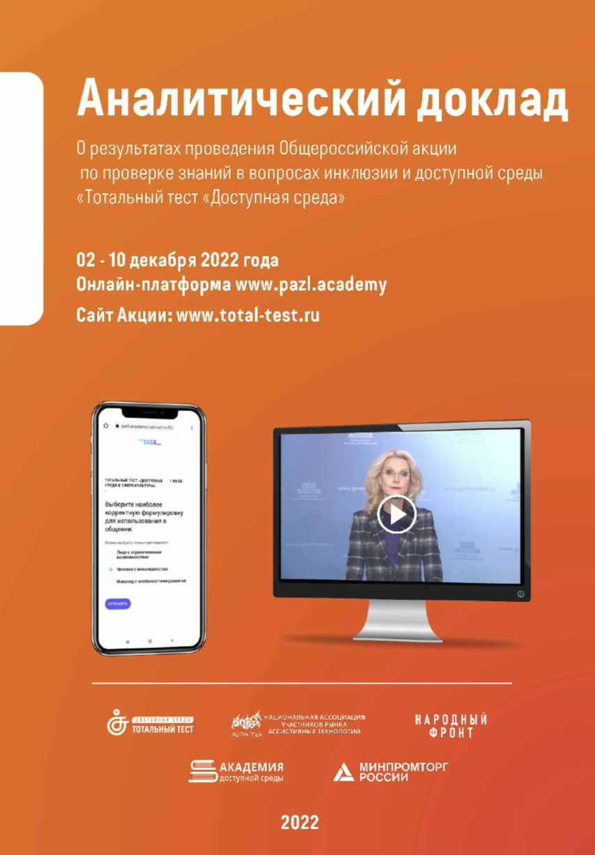 Минтруд России информирует о проведении с 1 по 10 декабря 2023 г. Общероссийским народным фронтом и Национальной ассоциации участников рынка ассистивных технологий «АУРА-Тех» общероссийской акции Тотальный тест «Доступная среда», приуроченной к Международному дню инвалидов (далее - акция, мероприятие).