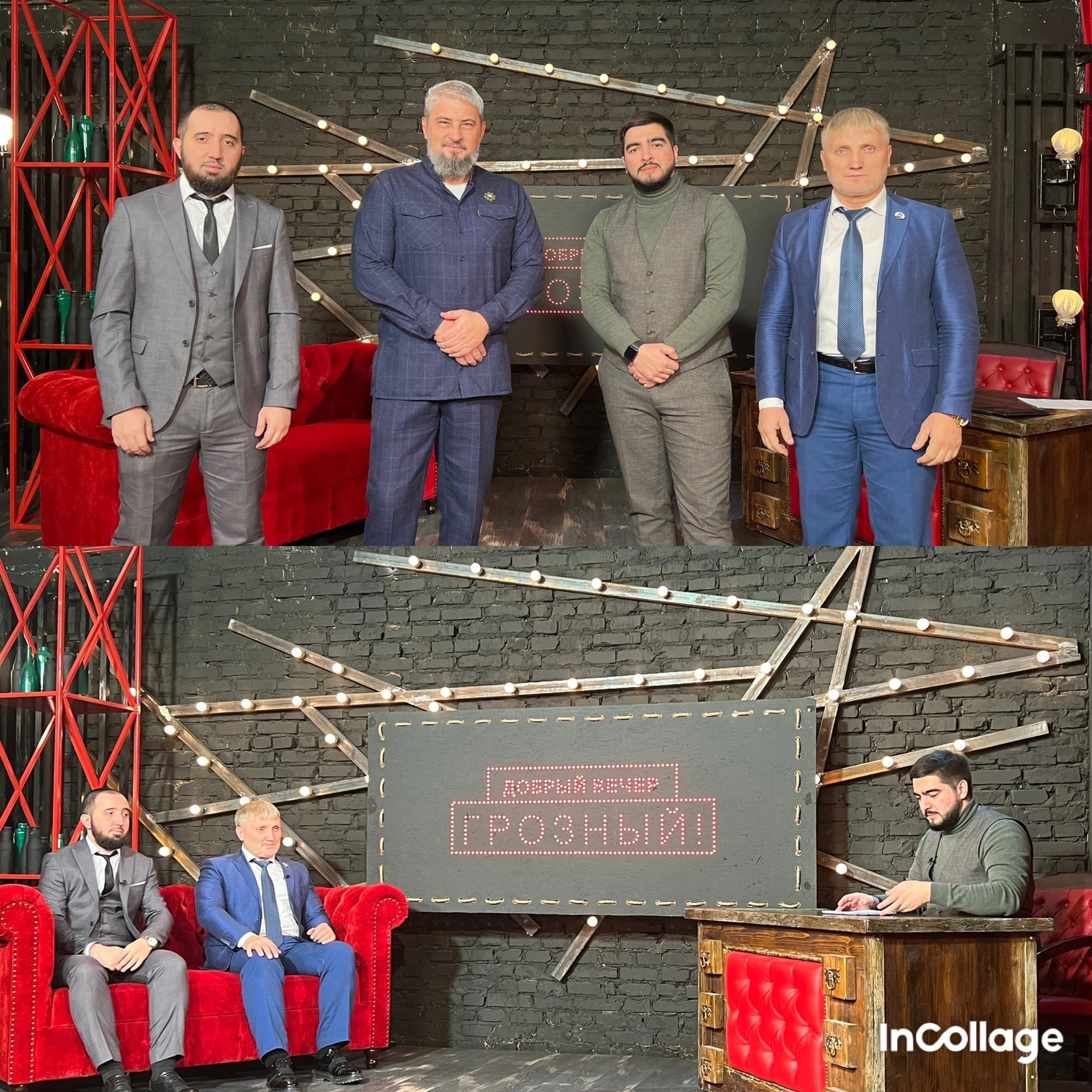 Педагог МБОУ «СОШ № 23» г. Грозного Мовлатов Лом-Али Ибрагимович с председателем МАОО «Национальный Совет» Мусой Дунаевым и помощником Главы ЧР Тимуром Алиевым на записи программы "ДОБРЫЙ ВЕЧЕР - ГРОЗНЫЙ"🎥