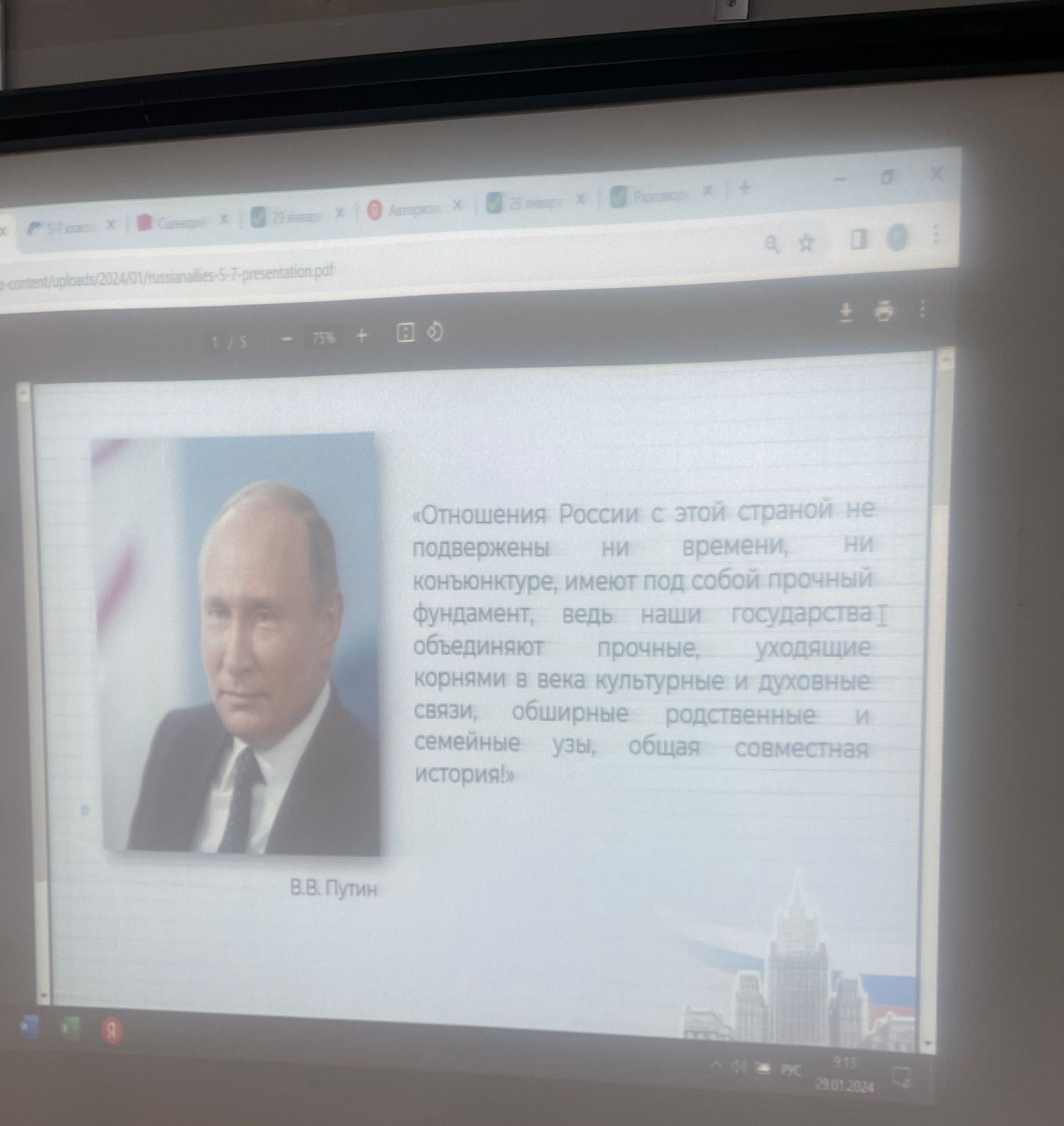 29 января 2024г. в МБОУ «СОШ № 23» г. Грозного классные руководители провели в своих классах уроки в рамках проекта "Разговоры о важном».