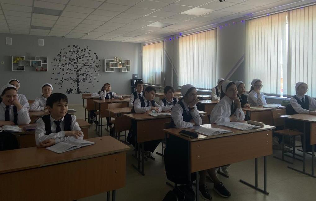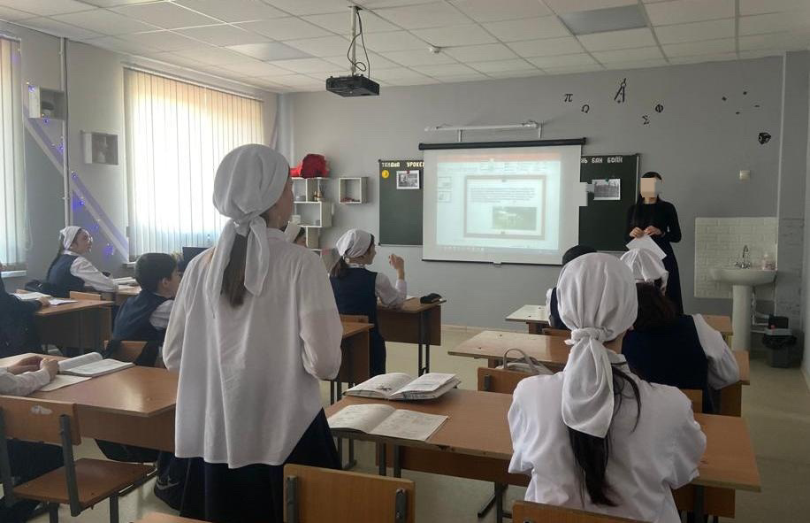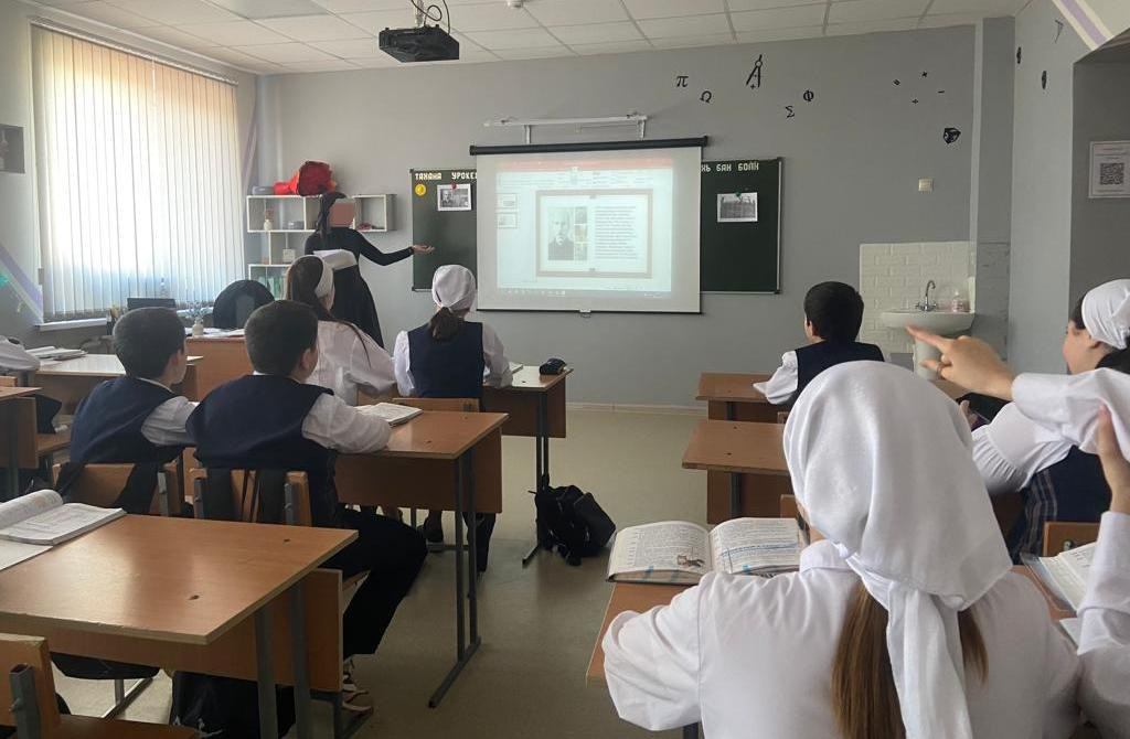 9 февраля 2024г. Саадуллаева Айзан Ахмедовна, учитель чеченского языка и литературы МБОУ "СОШ №23" г.Грозного провела открытый урок с 6 "Б" классом на тему: "Гадаев Мохьмад-Са