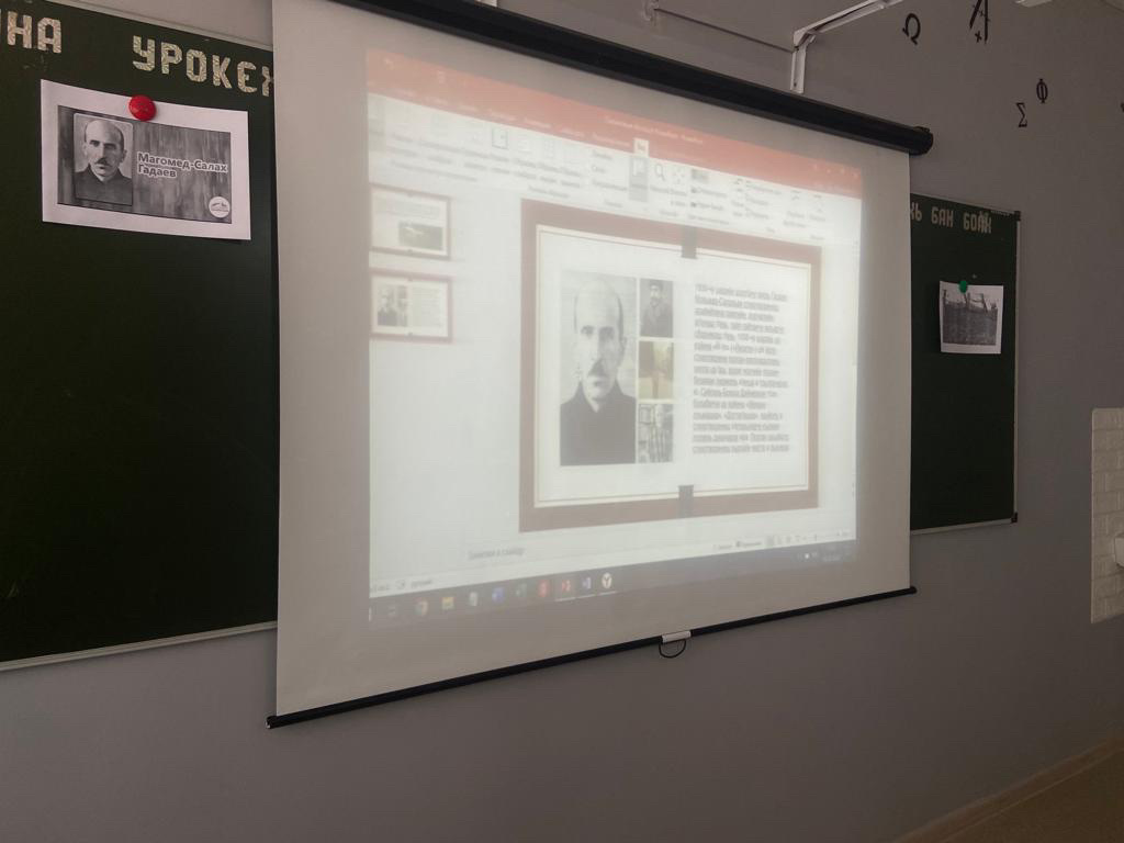 9 февраля 2024г. Саадуллаева Айзан Ахмедовна, учитель чеченского языка и литературы МБОУ "СОШ №23" г.Грозного провела открытый урок с 6 "Б" классом на тему: "Гадаев Мохьмад-Салахь, дахар а, кхолларалла а (1909-1972)».