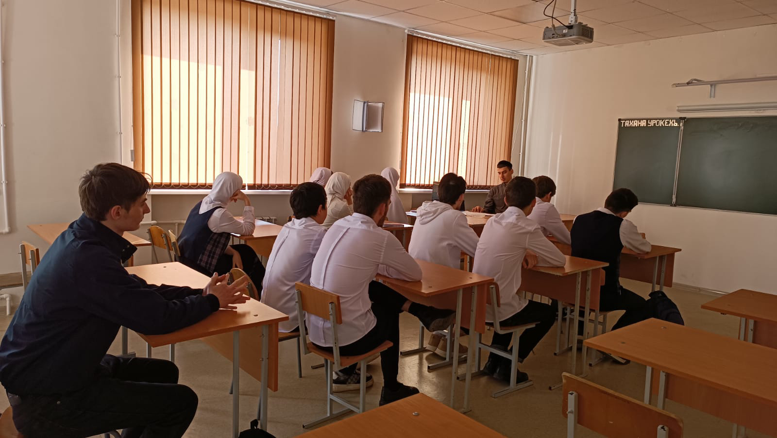 13 февраля 2024г. в МБОУ «СОШ №23» г. Грозного педагог-организатор по ДНВ Осмаев Исмаил Ахмедович провел беседу на тему: «Иман, Ислам, Ихьсан».