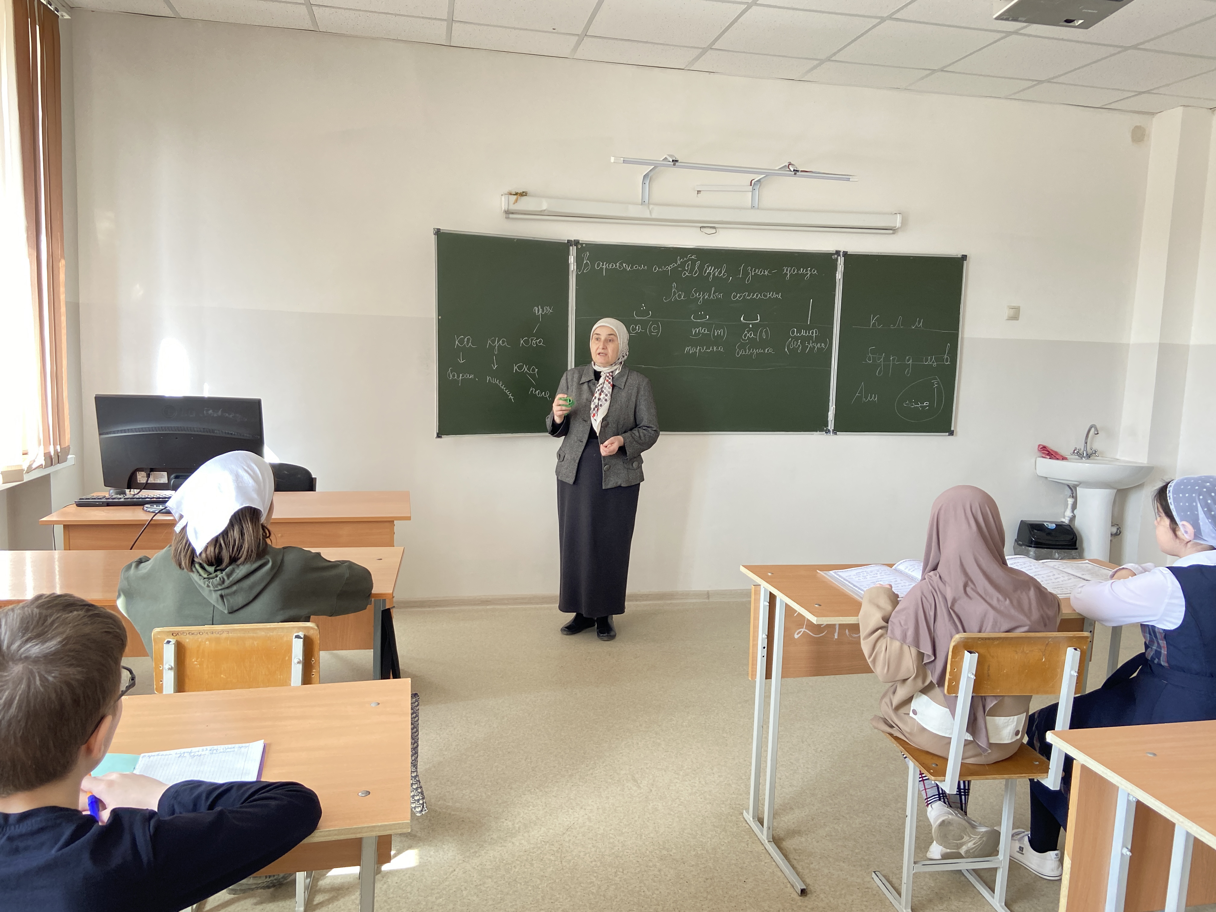 1 апреля 2024г. Ибрагимова Зухра Хусайновна, педагог дополнительного образования по арабскому языку, провела занятие в кружке «Азы арабского».