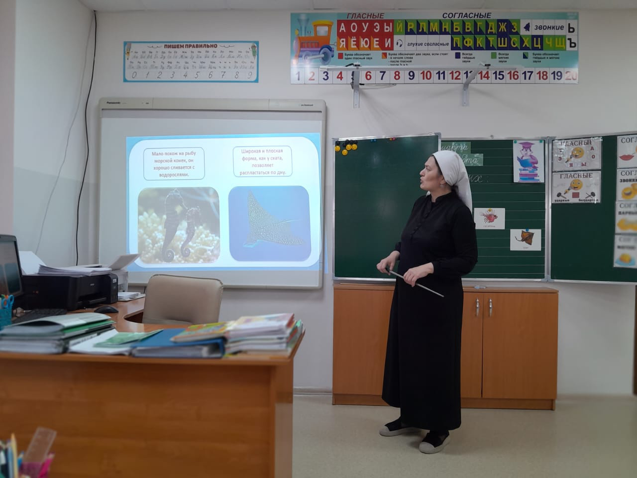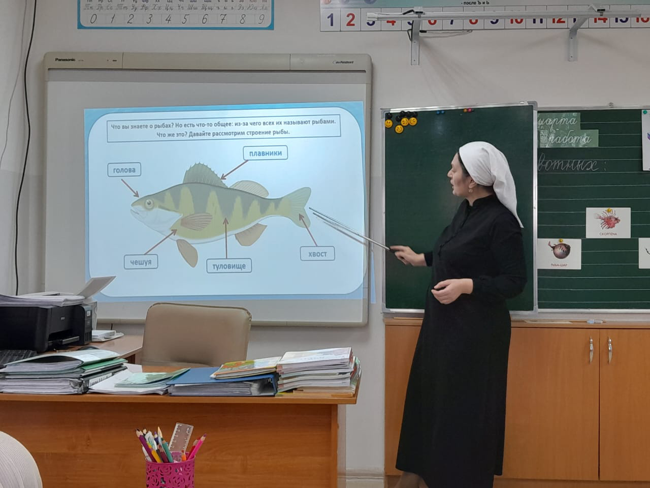 1 апреля 2024г. учитель начальных классов, Умаева Лариса Зайнабдиевна, провела урок окружающего мира в 1 в классе на