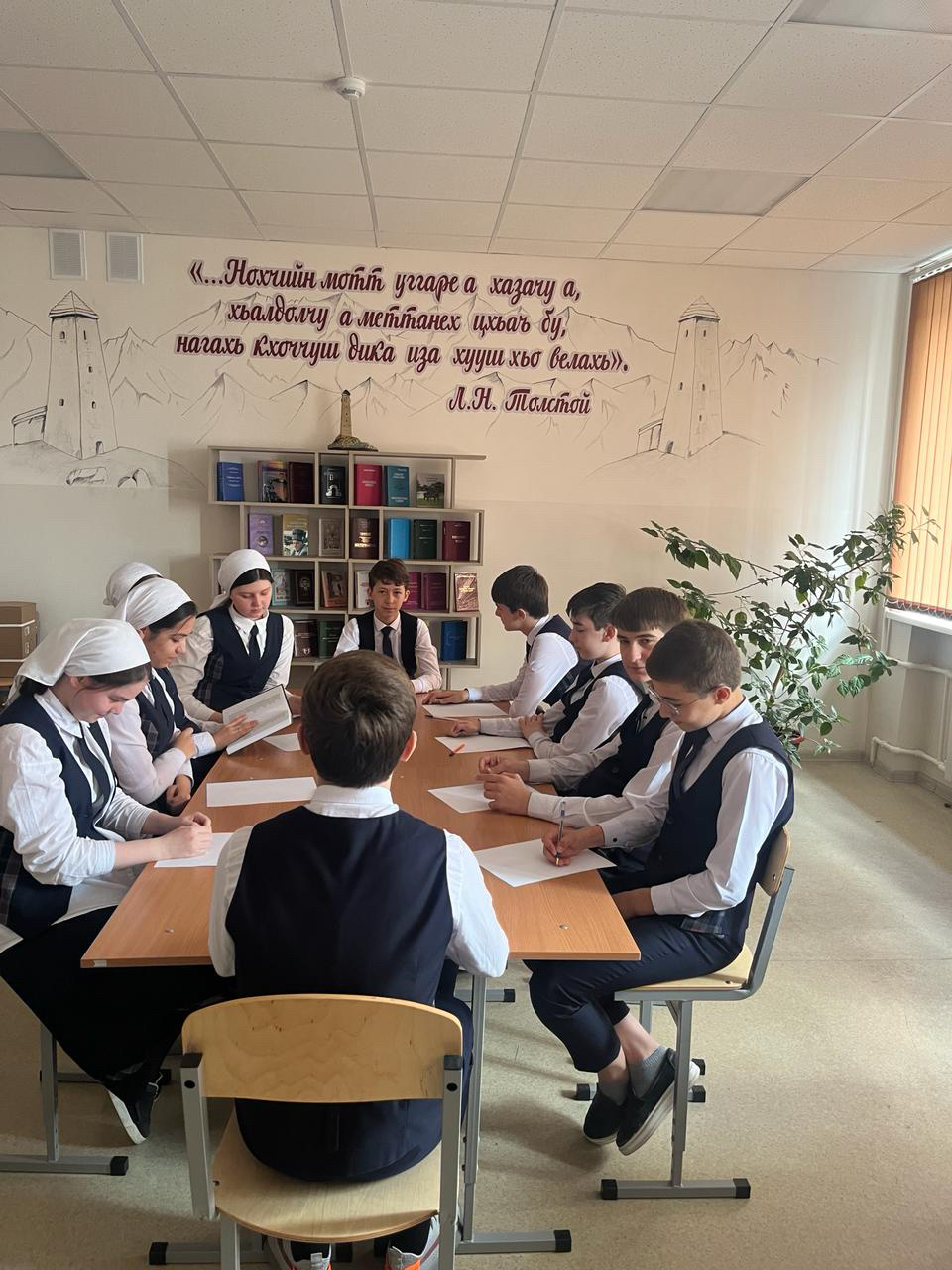 Учитель чеченского языка и литературы МБОУ «СОШ № 23» г. Грозного, Гамаева Хабила Увайсовна, провела круглый стол на тему "Мотт бу-къам ду, мотт бац- къам дац" среди учащихся 8-х классов. В