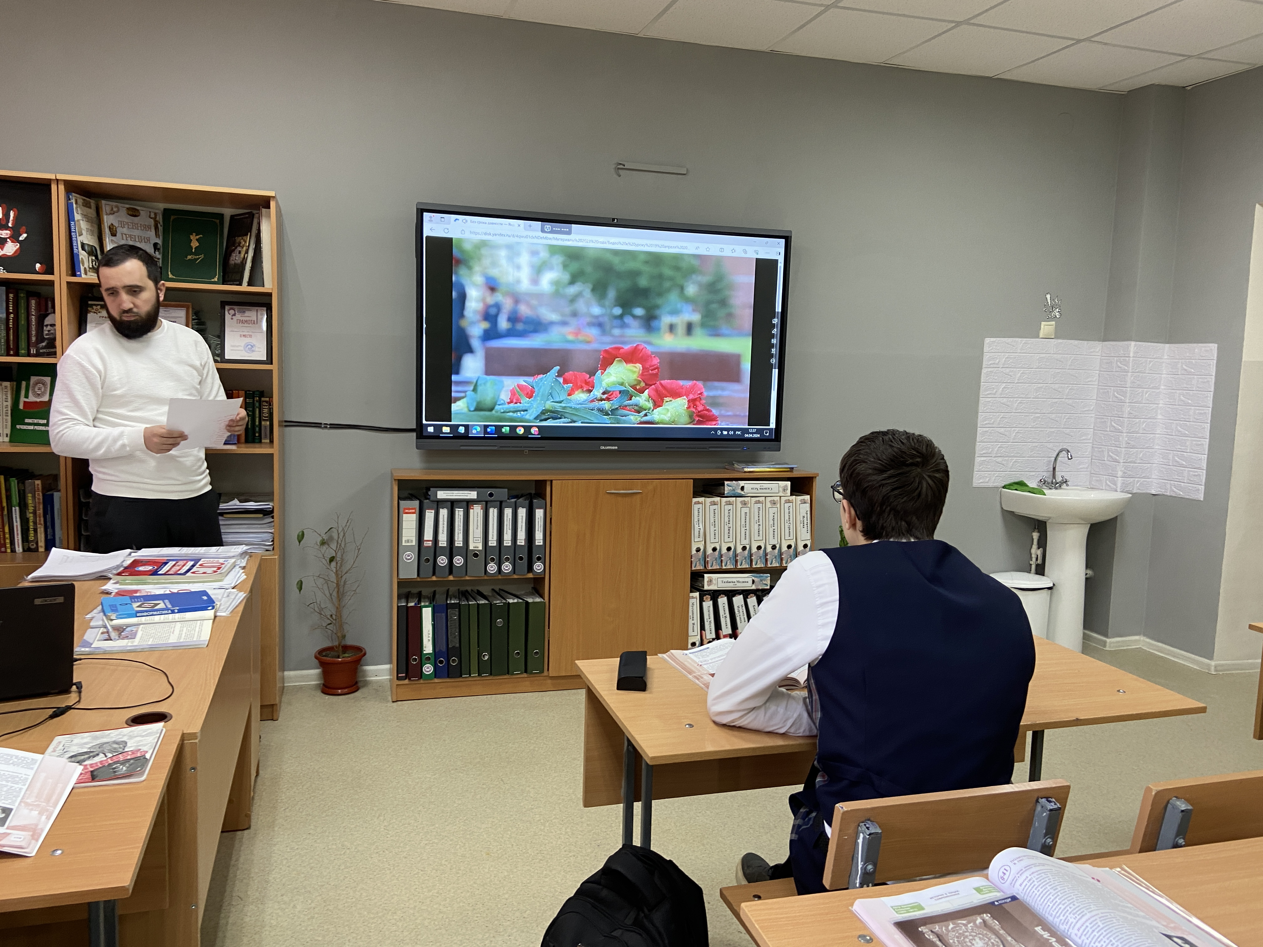 Советник директора по воспитанию и взаимодействию с детскими общественными объединениями МБОУ «СОШ № 23» г. Грозного, Мовлатов Лом-Али Ибрагимович, совместно с активом школы провели урок - реконструкцию «Без срока давности», разработанный проектом «Без срока давности».