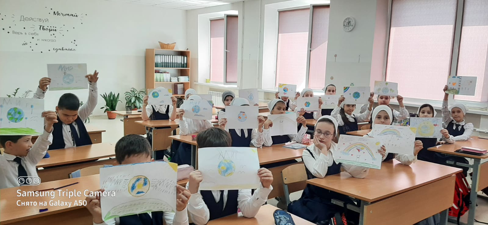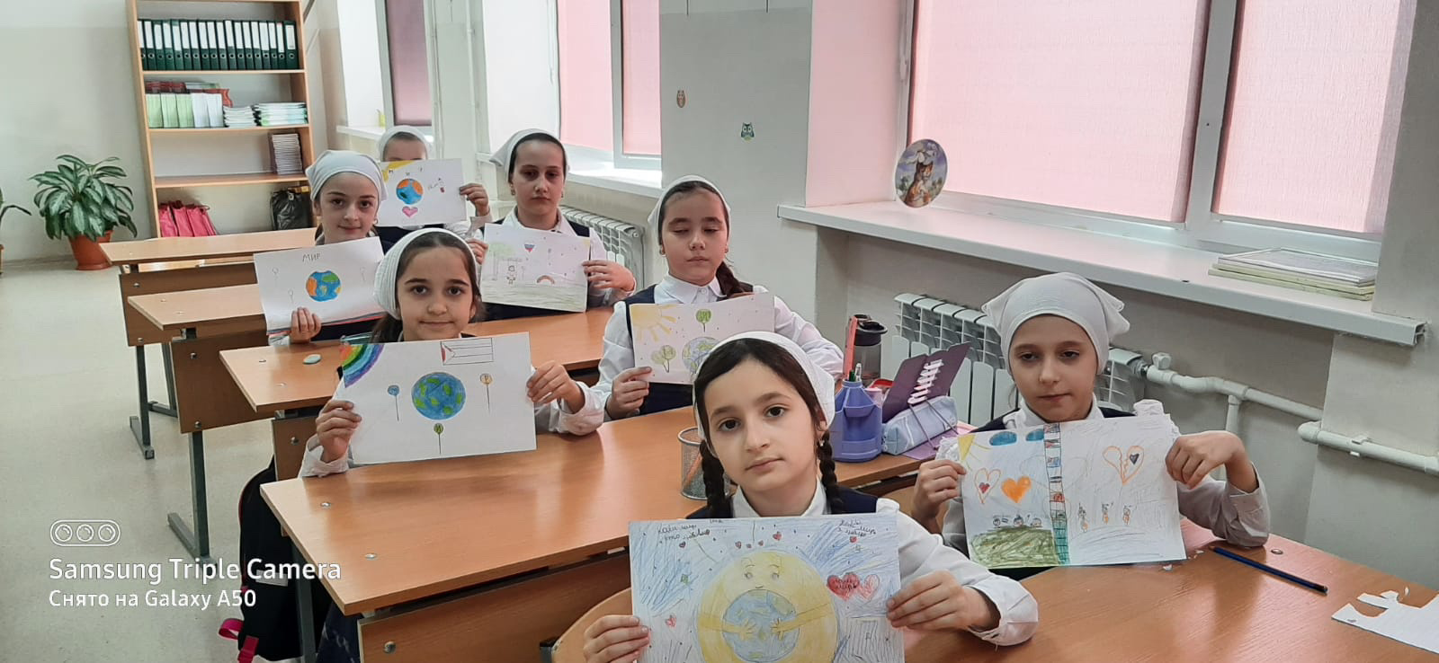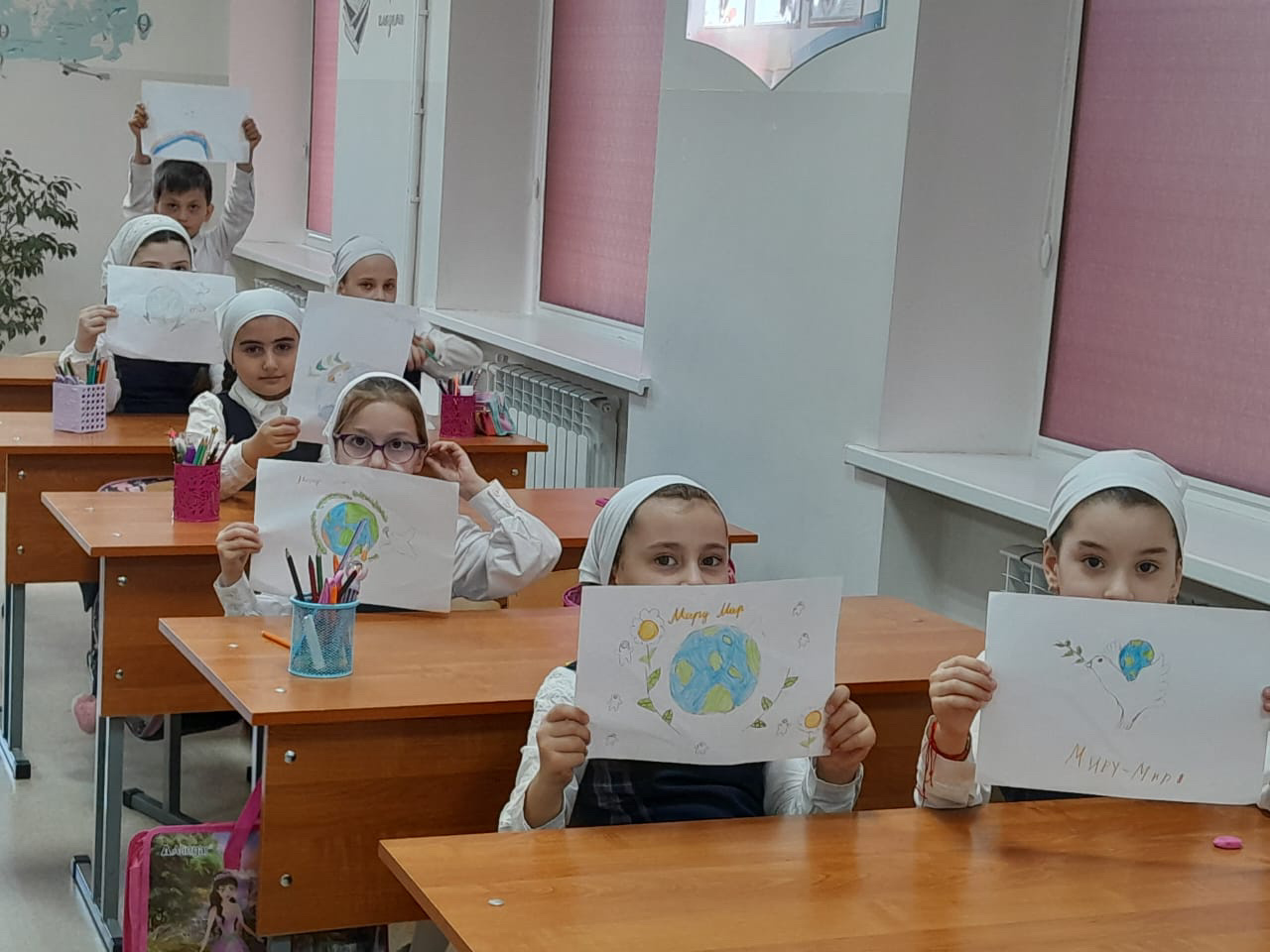 17 апреля 2024г. в 1 и 3 классах МБОУ «СОШ № 23» г. Грозного прошла выставка детского творчества «Мир глазами детей» ко Дню Мира.