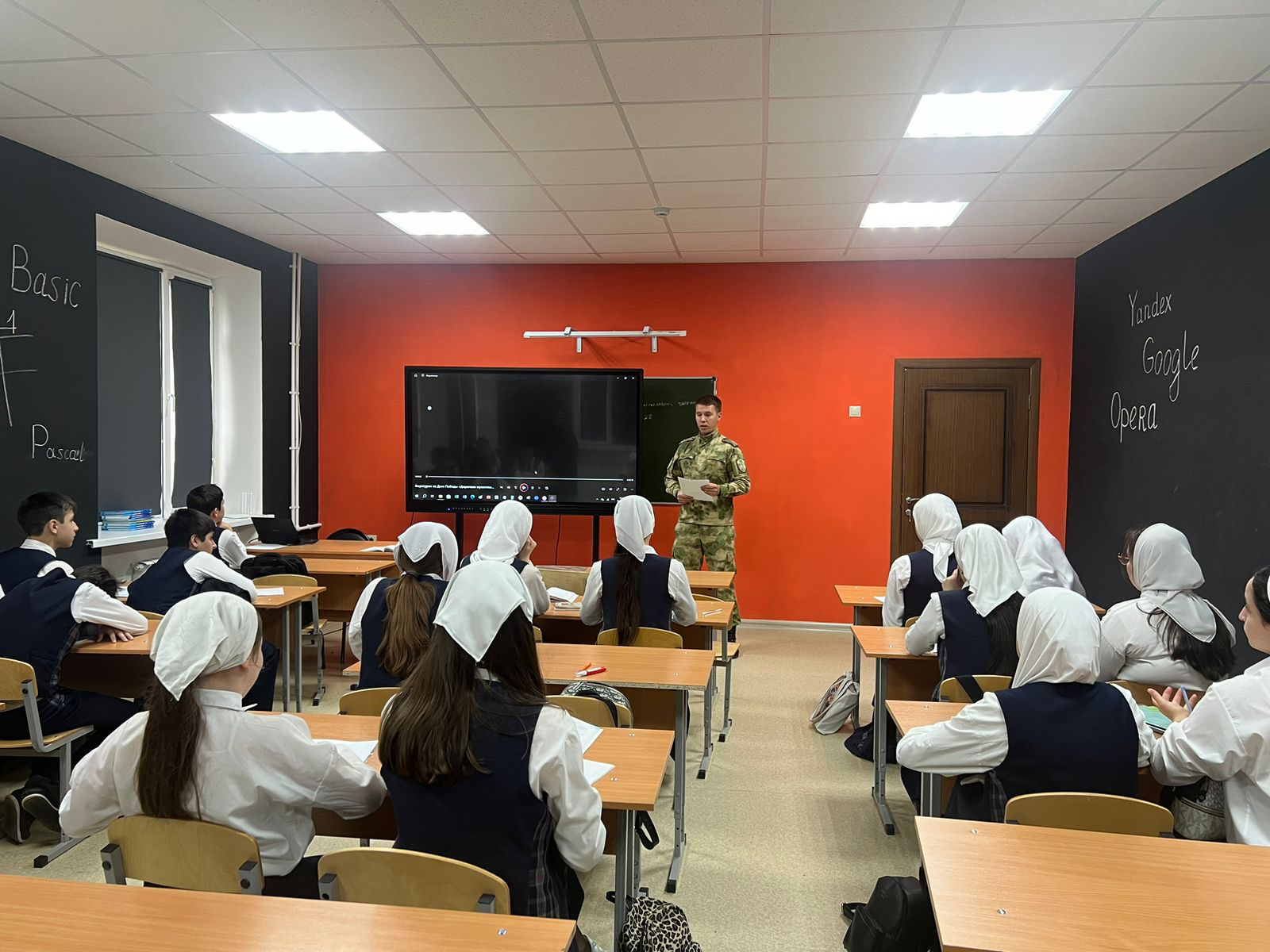 6 мая 2024г. старший лейтенант Шраге Кирилл Андреевич, заместитель командира роты по военно-политической работе войсковой части 2671, провёл Урок Мужества с учащимися МБОУ «СОШ № 23» г. Грозного.