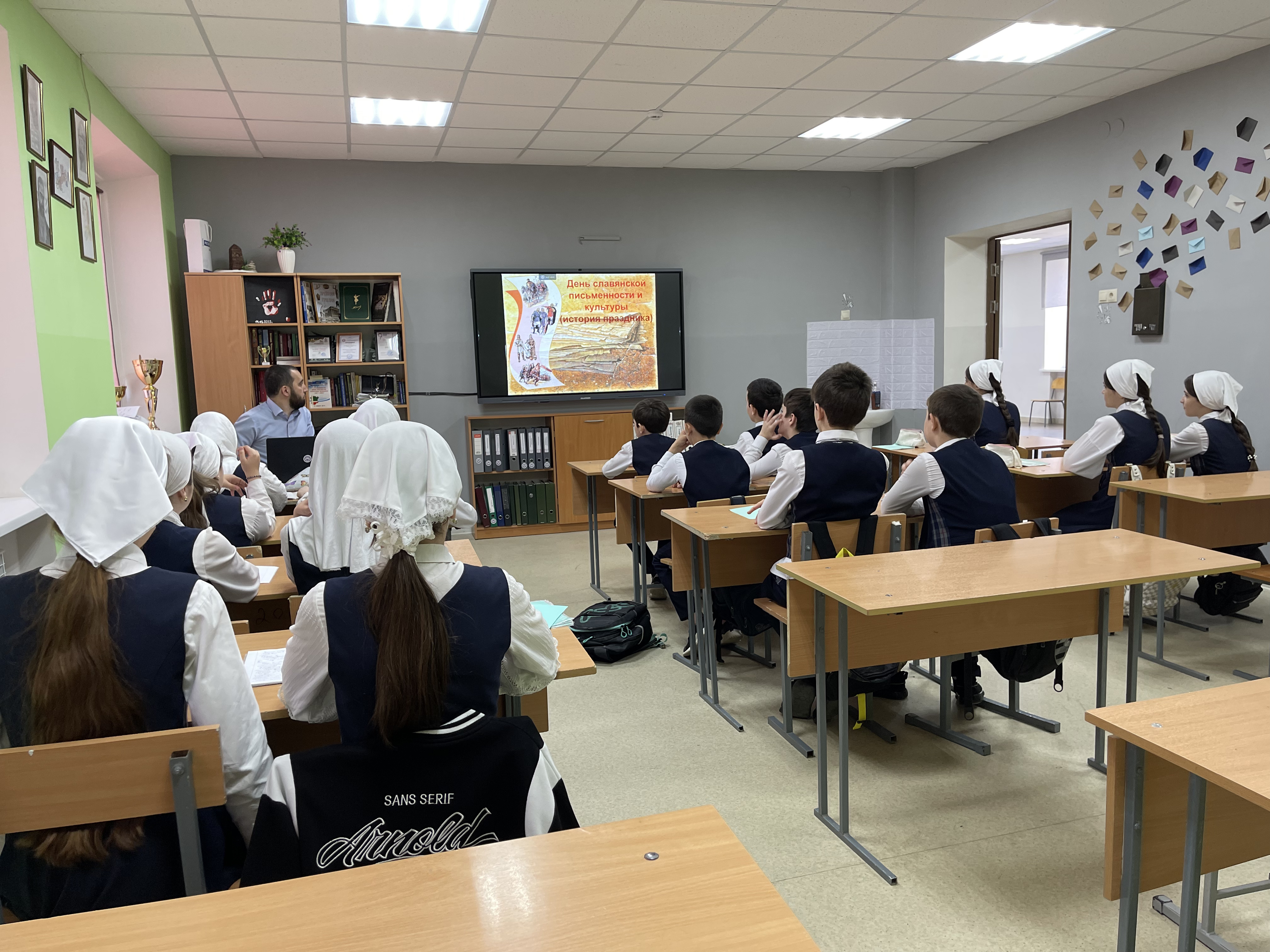 23 мая 2024г. советник директора по воспитанию и взаимодействию с детскими общественными объединениями МБОУ «СОШ № 23» г. Грозного, Мовлатов Лом-Али Ибрагимович, совместно с активом школы провели интерактивный урок «Кириллица и Глаголица: в поисках новых смыслов знакомых букв» в 5-х классах, в рамках которого обучащиеся познакомились с буквами Кириллицы