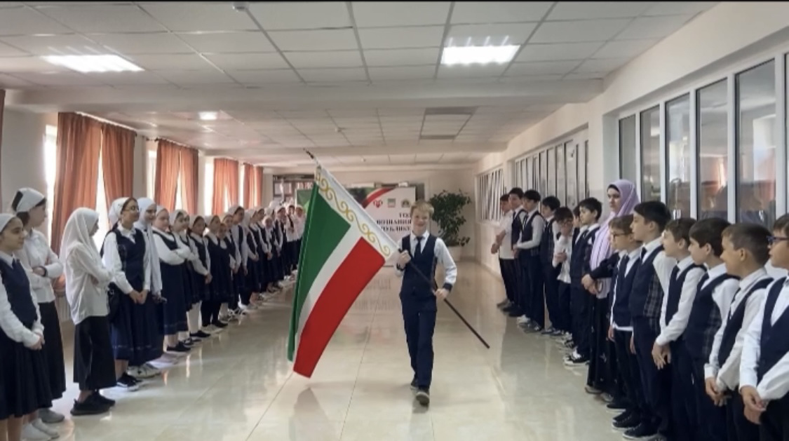 20 мая 2024г. в МБОУ "СОШ № 23" г.Грозного продолжается традиционное проведение торжественной церемонии внесения флагов Российской Федерации и Чеченской Республики под исполнение гимнов РФ и ЧР.