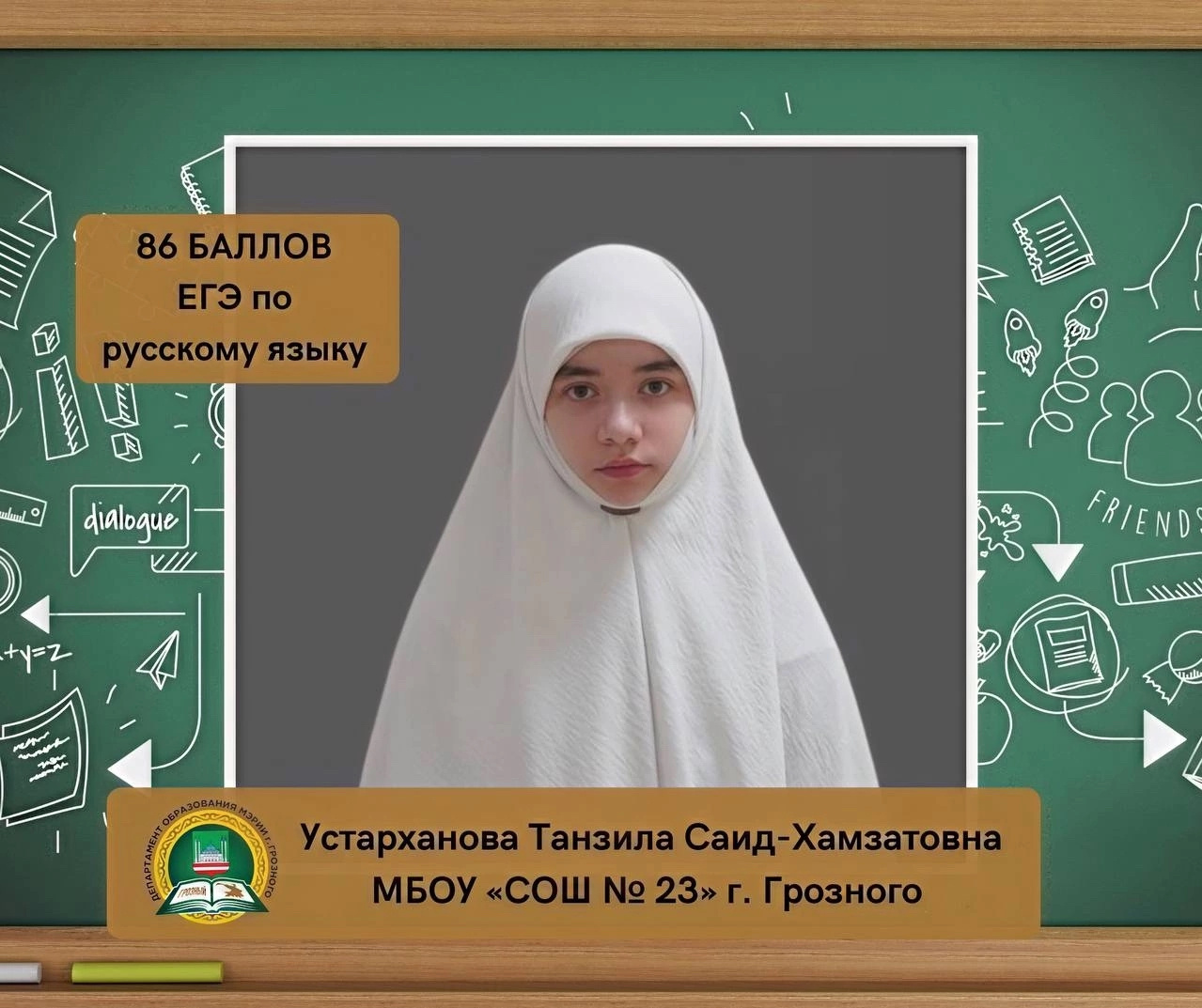 Устарханова Танзила Саид-Хамзатовна, ученица МБОУ «СОШ № 23» г. Грозного, набрала 86 баллов на ЕГЭ по русскому языку.