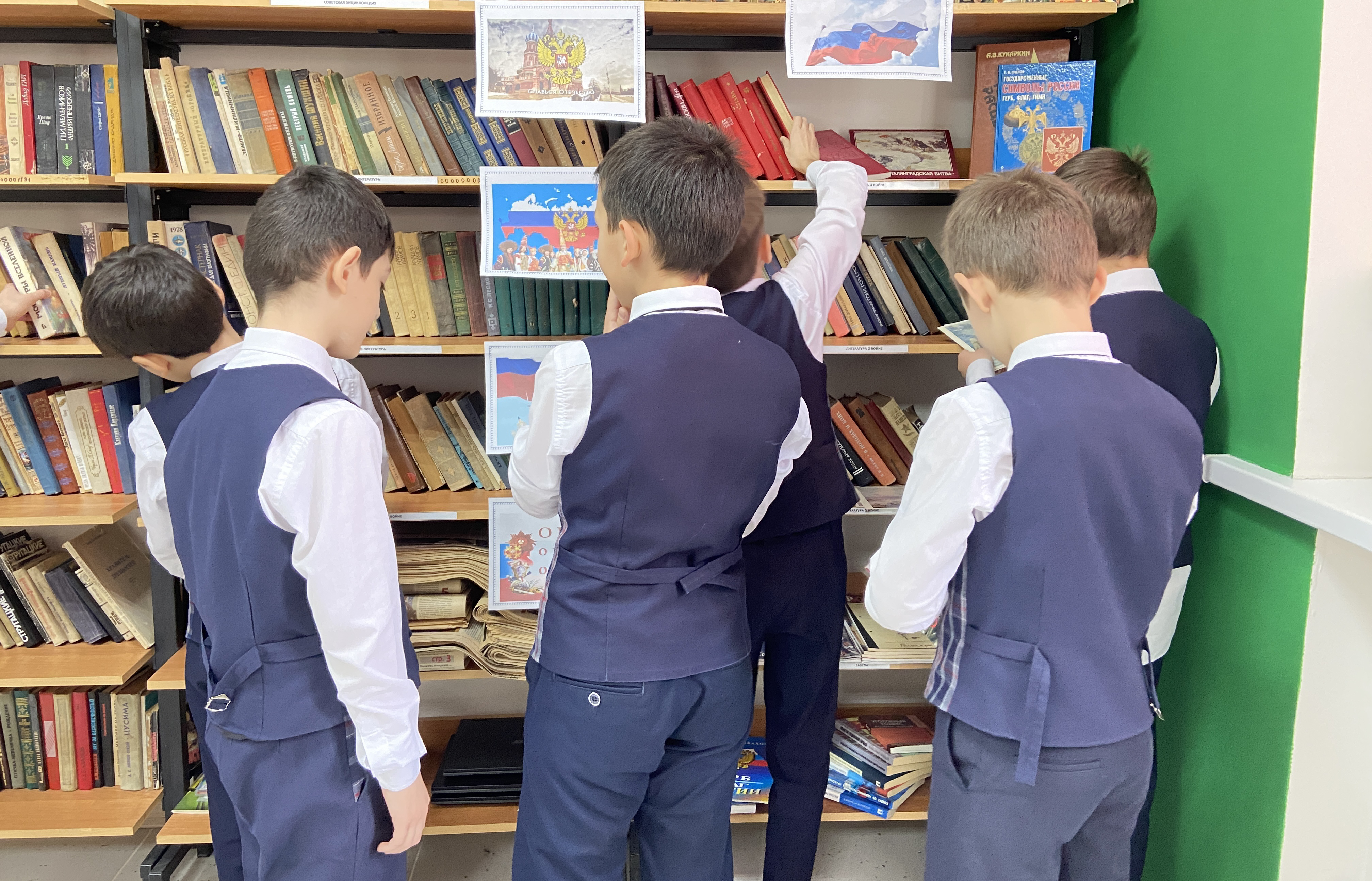 Советник директора по воспитанию и взаимодействию с детскими общественными объединениями МБОУ "СОШ № 23" г. Грозного, Мовлатов Лом-Али Ибрагимович, совместно с зав.библиотекой Юсуповой Мадиной Сайд-Алиевной, организовали тематическую полку «Герои Отечества».