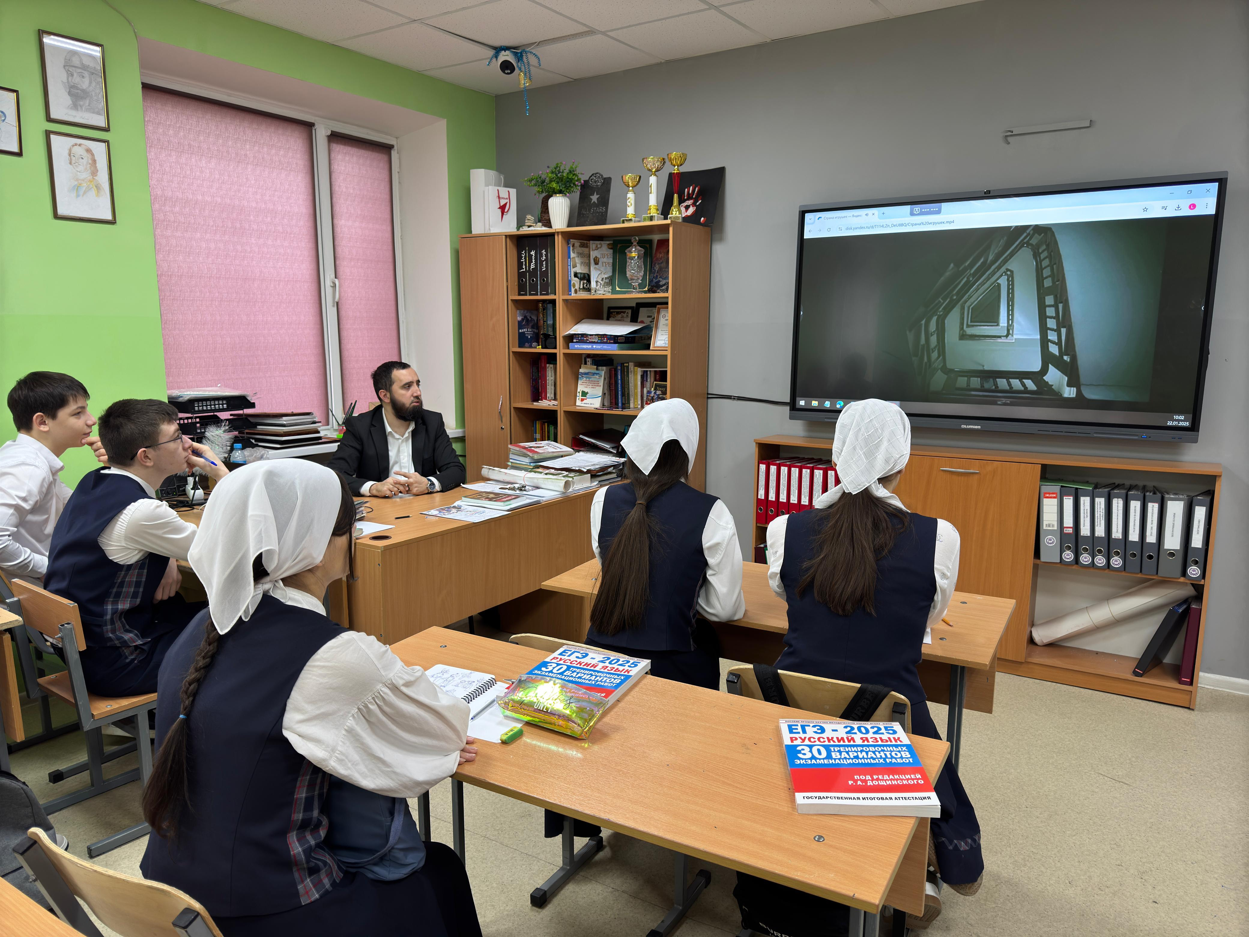 Советник директора по воспитанию и взаимодействию с детскими общественными объединениями МБОУ "СОШ № 23" г. Грозного, Мовлатов Лом-Али Ибрагимович, совместно с активом обучающихся провел киноурок