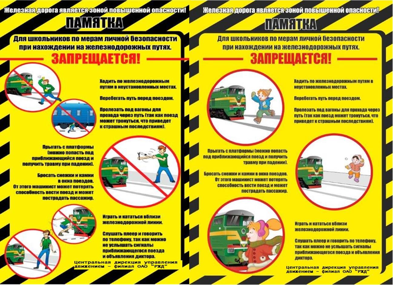 Памятка для школьников и родителей по мерам безопасности при нахождении на железнодорожных путях